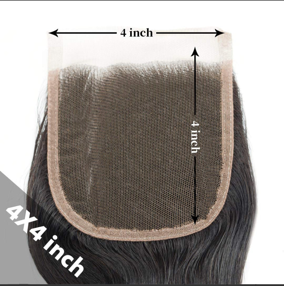 Introducing our versatile and high-quality 4x4 closure. Get a perfect match with our body wave, straight, deep wave or bohemian wave bundles. Made to withstand bleaching and dying, this closure offers endless styling possibilities. Upgrade your look with confidence and ease.